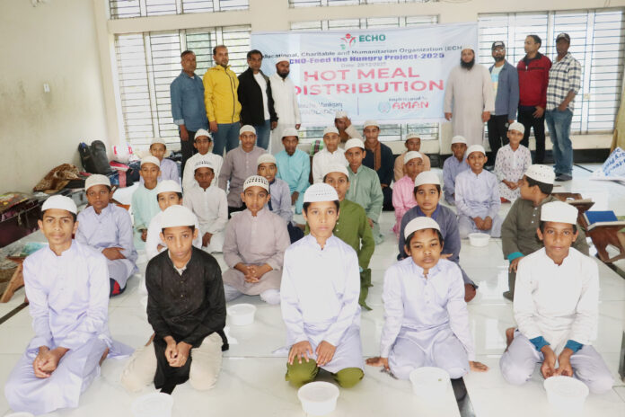 অনুষ্ঠানে ইকোর পক্ষ থেকে, (প্রোগ্রামার, জাতীয় বিশ্ববিদ্যালয় ) মোঃ সাইফুর রহমান, (বিশিষ্ট ব্যবসায়ী) মোহাম্মদ গালিবুর রহমান, (বিশিষ্ট সমাজসেবী) মোহাম্মদ আশরাফ উজ্জামান, (বিশিষ্ট সমাজসেবী) মোহাম্মদ আরিফুর রহমান, (বাংলাদেশ ক্রিকেট বোর্ডের কাউন্সিলর ও বিশিষ্ট ব্যবসায়ী) কাজী হারানো রশিদ( পিন্টু), শিক্ষার্থীদের হাতে খাবার তুলে দেন। একবেলা উন্নত মানের খাবার পরিবেশনে ইকোর এমন উদ্যোগকে সাধুবাদ জানিয়েছেন স্থানীয়রা। সমাজের পিছিয়ে পড়া হতদরিদ্রদের সচেতন করতে এবং আর্থসামাজিকভাবে সচ্ছল করতে কাজ করছে ইকো। সংস্থাটি পাবলিক বিশ্ববিদ্যালয়, মেডিকেল কলেজ, সরকারি ইঞ্জিনিয়ারিং কলেজ, পলেটেকনিক কলেজ ও নার্সিং কলেজে অধ্যায়নরত মেধাবী শিক্ষার্থীদের উচ্চতর শিক্ষা নিশ্চিত করতে শিক্ষাবৃত্তি প্রদানের মতো কার্যক্রম পরিচালনা করে আসছে।