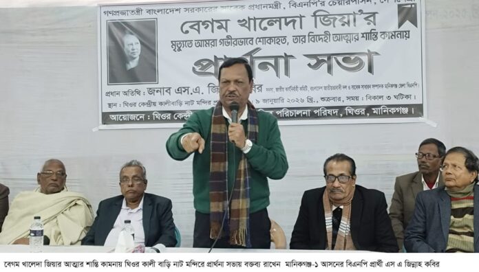 ঘিওরে সাবেক প্রধানমন্ত্রী বেগম খালেদা জিয়ার আত্মার শান্তি কামনায় প্রার্থনা সভা
