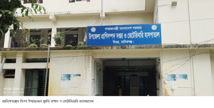 মানিকগঞ্জের ঘিওর উপজেলার ধলেশ্বরী নদীর পাশে অত্যন্ত সুন্দও মনোরম পরিবেশে নিজস্ব জমিতে ২০০১ সালে প্রথম দিকে তিন তালা বিশিষ্ট ঘিওর প্রাণি সম্পদ ও ভেটেরিনারি হাসপাতালটি নির্মান করা হয়। এলাকার অসহায় দরিদ্র কৃষকেরা এখানে গরু , ছাগল, হাঁস মুরগী ও পোল্টি মুরগি ও বিভিন্ন খামারিরা শুষ্ট চিকিৎসা সেবা ও বিভিন্ন ধরনের পরামর্শ পেত। কিন্তু দুঃখ জনক হলেও সত্য, বর্তমানে ভেটেরিনারি হাসপাতালটির বেহাল অবস্থা। প্রয়োজনীয়, ওষুধ এবং পশুর চিকিৎসা না থাকায় এলাকার শত শত লোকজন গরু, ছাগল, ঘোড়া মহিষ পোলট্রি খামারিদের চিকিৎসার ক্ষেত্রে চরম দুর্ভোগ পোহাতে হচ্ছে।