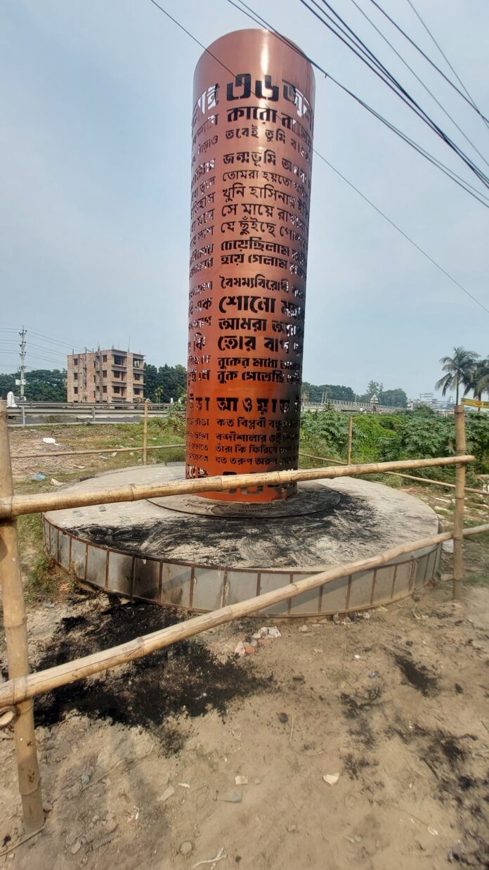 স্মৃতিস্তম্ভের কিছু অংশ পুড়ে কালো হয়ে যায়।