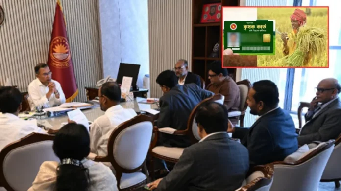 মঙ্গলবার (১৭ মার্চ) দুপুরে সচিবালয়ে মন্ত্রিপরিষদ বিভাগে প্রধানমন্ত্রীর সঙ্গে কৃষক কার্ড প্রণয়ন সেলের বৈঠকে এ সিদ্ধান্ত নেওয়া হয়। প্রধানমন্ত্রীর অতিরিক্ত প্রেস সচিব আতিকুর রহমান রুমন বিষয়টি নিশ্চিত করেছেন।