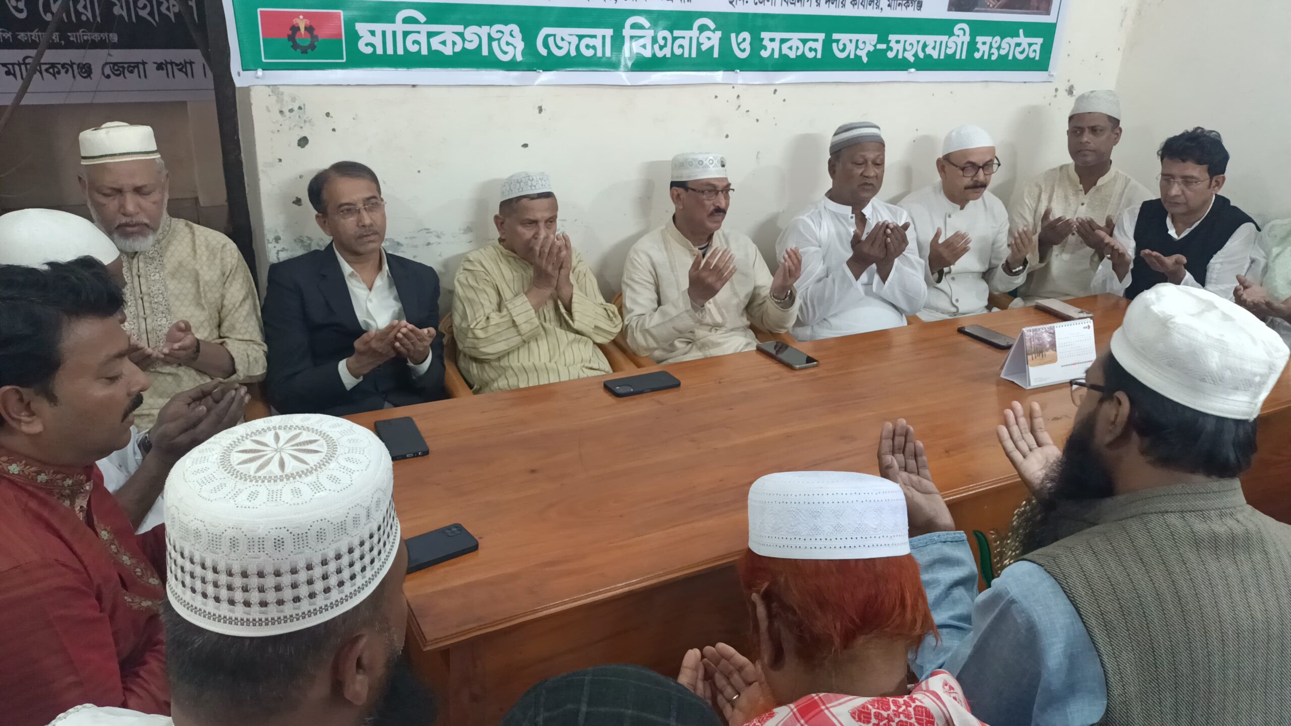 মানিকগঞ্জে তিনটি আসনে বিএনপি বিজয় লাভ করায় জেলা বিএনপি অফিসে দোয়া মাহফিল।ছবি :সোহানুর হোসেন সাগর