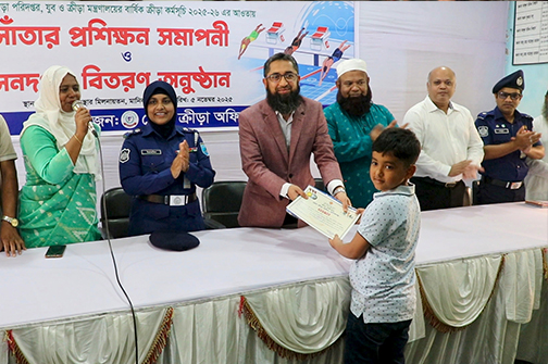 প্রধান অতিথির বক্তব্যে জেলা প্রশাসক ড. মানোয়ার হোসেন মোল্লা বলেন, “সাঁতার একটি জীবন রক্ষাকারী দক্ষতা। প্রতিটি শিশুর সাঁতার শেখা জরুরি, কারণ দুর্ঘটনাবশত পানিতে ডুবে মৃত্যুর ঘটনা আমাদের দেশে প্রায়ই ঘটে। এই প্রশিক্ষণ শিক্ষার্থীদের আত্মবিশ্বাসী হতে সহায়তা করেছে।”