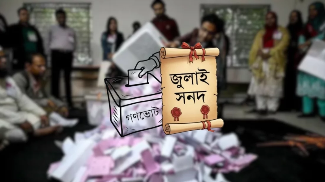 সদ্য সমাপ্ত ত্রয়োদশ জাতীয় সংসদ নির্বাচনের সাথে একই দিনে অনুষ্ঠিত গণভোটে ‘জুলাই সনদ’ বাস্তবায়নের পক্ষে রায় দিয়েছেন দেশের অধিকাংশ ভোটার। ১২ কোটি ৭৭ লাখ ভোটারের মধ্যে প্রায় সাত কোটি ৭৬ লাখ ৯৫ হাজার মানুষ তাদের ভোটাধিকার প্রয়োগ করেছেন, যার মধ্যে ৬২ শতাংশের বেশি ভোটার ‘হ্যাঁ’ ভোট দেওয়ায় জুলাই সনদ বাস্তবায়নের আইনি পথ উন্মুক্ত হয়েছে।