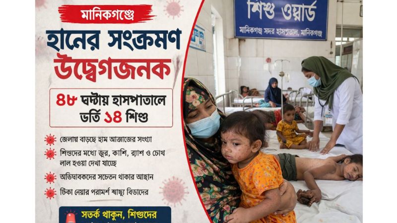 এছাড়াও মানিকগঞ্জ মেডিকেল কলেজের স্বাস্থ্য বিভাগ জানিয়েছে, পরিস্থিতি নিয়ন্ত্রণে আনতে ইতোমধ্যে প্রয়োজনীয় ব্যবস্থা গ্রহণ করা হয়েছে। একই সঙ্গে সবাইকে সচেতন থাকার এবং শিশুদের নির্ধারিত সময়সূচি অনুযায়ী টিকা নিশ্চিত করার আহ্বান জানানো হয়েছে।