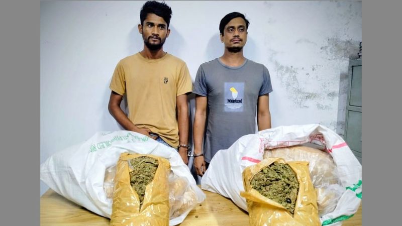 পুলিশ আরও জানায়, বিল্লাল হোসেনের কাছ থেকে একটি সাদা প্লাস্টিকের বস্তায় ৭ কেজি গাঁজা এবং জাহিদ হাসানের কাছ থেকে আরেকটি বস্তায় ৬ কেজি গাঁজা উদ্ধার করা হয়। উদ্ধারকৃত গাঁজার মোট পরিমাণ ১৩ কেজি।
