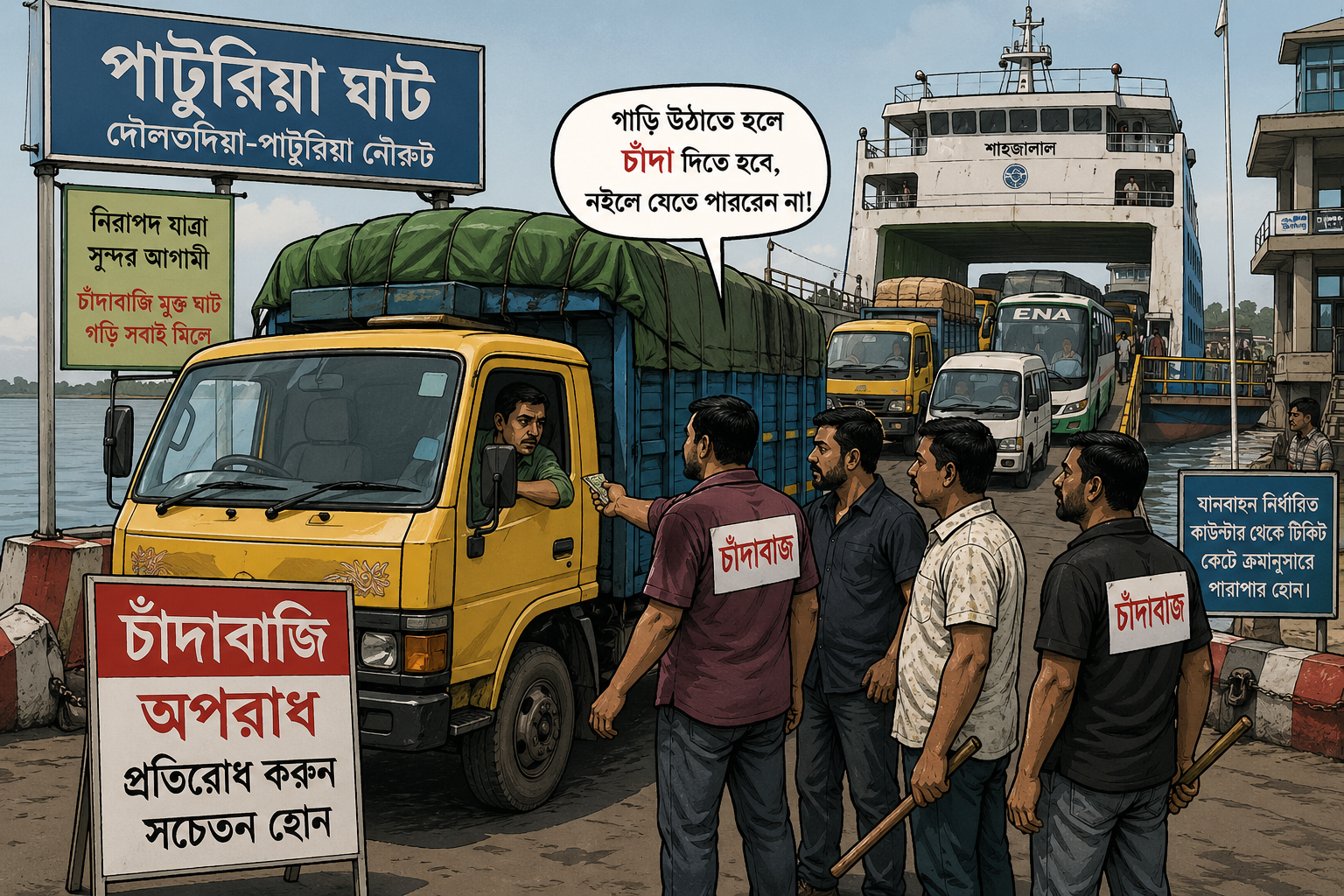 জানা গেছে, গত ৫ আগস্ট ২০২৪ খৃষ্টাব্দের পর থেকে পাটুরিয়া ঘাটে পরিবহণ থেকে মোটা অংকের চাঁদাবাজি বন্ধ হওয়ায় মালিক-শ্রমিকদের মাঝে ফিরে আসে স্বস্তির নি:শ্বাস।কিন্তু গত ১২ ফেব্রুয়ারী জাতীয় নির্বাচনের পর যেভাবে আবার চাঁদাবাজির পায়তারা শুরু হয়েছে এ স্বস্তির নি:শ্বাস কয়দিন থাকে এটাই এখন মালিক-শ্রমিকদের চিন্তার বিষয়।কিন্তু তর সইছে না চাঁদাবাজ সংগঠনের নেতাকর্মীদের।মালিক-শ্রমিক না হয়েও এরা এখন মালিক-শ্রমিকের নামে কমিটি এনে চাঁদাবাজির পায়তার করছে।