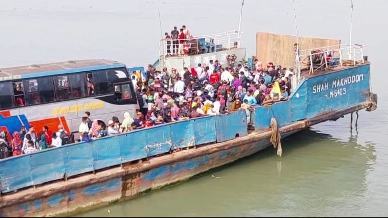 আজ সকাল থেকেই পাটুরিয়া লঞ্চঘাটে ঘরমুখো মানুষের উপচে পড়া ভিড় দেখা গেছে।