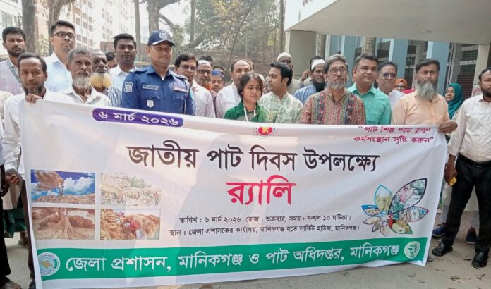 পাট সোনালী আঁশ, দেশের গৌরব” এই প্রতিপাদ্যকে সামনে রেখে জাতীয় পাট দিবস উপলক্ষে মানিকগঞ্জে বর্ণাঢ্য র্যালি ও আলোচনা সভা অনুষ্ঠিত হয়েছে।