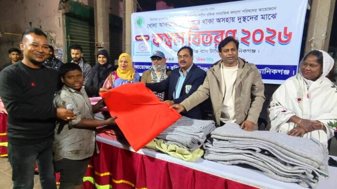 বৃহস্পতিবার রাত ১২ টায় মানিকগঞ্জ বাসস্ট্যান্ড বাস টার্মিনাল এলাকায় এ কম্বল বিতরণ অনুষ্ঠিত হয়।