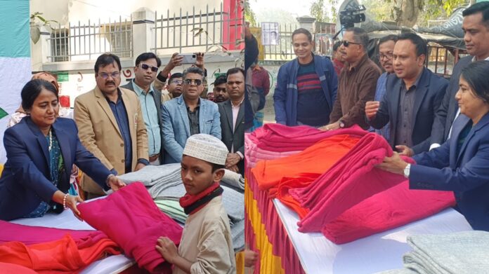 আজ শনিবার বেলা সাড়ে ১০ টার দিকে শহরের শহীদ স্মৃতিস্তম্ভে দেশের অন্যতম শিল্প প্রতিষ্ঠান ডেবোনেয়ার গ্রুপের সার্বিক সহযোগিতায় আয়োজিত এ শীতবস্ত্র বিতরণ অনুষ্ঠানে প্রধান অতিথি হিসেবে উপস্থিত ছিলেন জেলা প্রশাসক নাজমুন আরা সুলতানা।