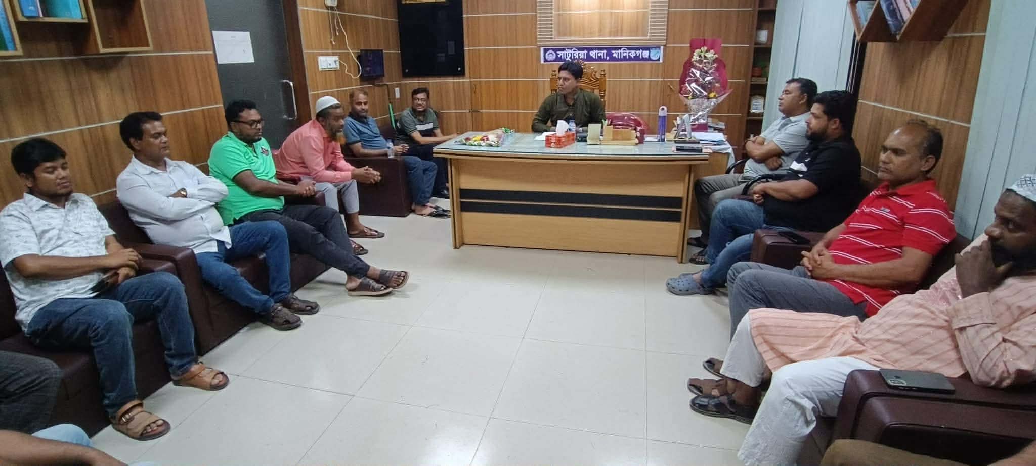 শুক্রবার সন্ধ্যায় থানা প্রাঙ্গণে আয়োজিত এ সভায় সাটুরিয়া প্রেসক্লাব নেতৃবৃন্দ ও সদস্য বৃন্দ উপস্থিত ছিলেন।