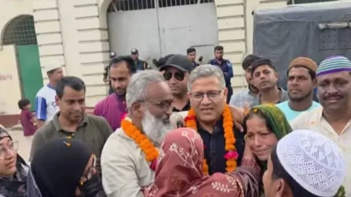ফরিদপুর-৪ আসনের সীমানা জটিলতা নিয়ে আন্দোলনের সময় গ্রেপ্তার হওয়া আওয়ামী লীগ নেতা ও ইউপি চেয়ারম্যান ম ম সিদ্দিক মিঞা (৫৭) দীর্ঘ ১৭৫ দিন কারাভোগের পর জামিনে মুক্তি পেয়েছেন। কারাগার থেকে বের হওয়ার পর ফরিদপুর জেলা কারাগারের ফটকে তাকে ফুল দিয়ে স্বাগত জানান ওই আসনের বিএনপি থেকে নির্বাচিত সংসদ সদস্য শহিদুল ইসলাম বাবুল।